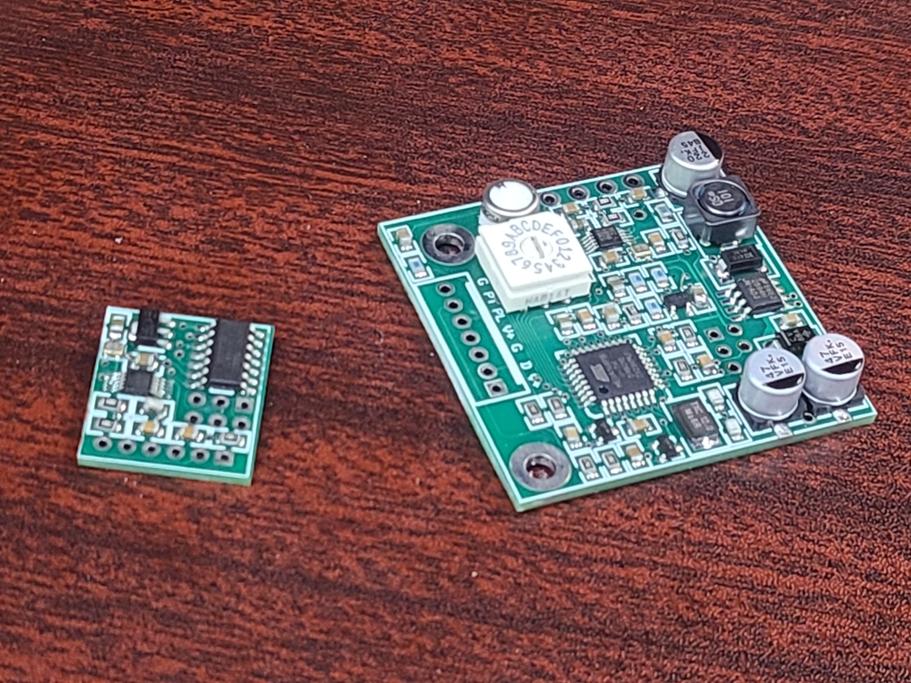Tom KJ5NMH found a 1960s era HT-200 handie, a dual freq model (Motorolas in those days were often single, dual, or sometimes 4 freq variations) and took it home for a pittance (and put in a home made freq synthesizer – also PL tone synthesizer – that he designed himself.) (It’s the size of a crystal can, not quite an inch square.) Here are two boards he has made recently, the postage stamp size freq and tone generator that fits inside an H/T, and the slightly larger multi freq board for mobile rigs.