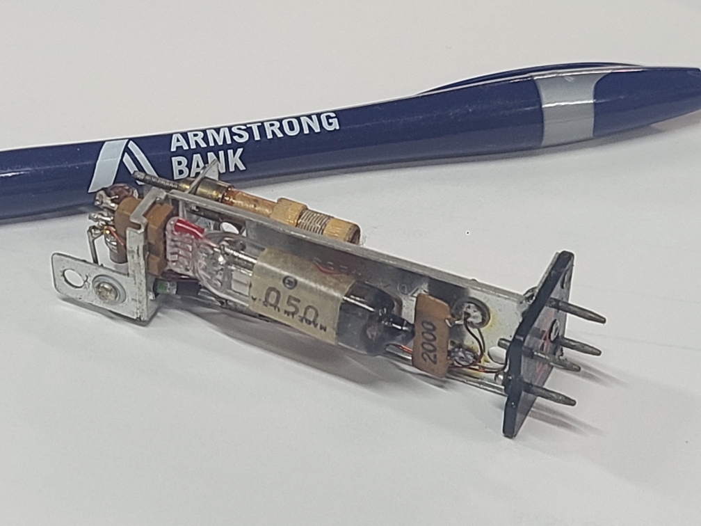 We meet 2wice a month, 2nd and 4th Thursday, and as usual (April 9th) it’ll be at Scott’s hamburgers in downtown Bixby 7PM to 8:15PM. If you come a bit early you can get a great hamburger for dinner. After the initial Show & Tell of whatever people bring (last month it was a 1948 handy talkie – working) we’ll discuss 2 magnificent electronic designs, the five tube radio, and the single transistor TouchTone (reg PatOff) oscillator. Of course both designs grew from Ed Fleming’s diode tube; Lee DeForest’s Audion amplifying tube, the SuperHet radio receiver layout, and later, William Shockley’s 1947 point contact transistor. Edwin Armstrong was smart and helped, but I’m not sure if General Robert Sarnoff was instrumental in anything other than buidling RCA. Oh, the Pentagrid thing? A superheterodyne receiver utilizes a Local Oscillator and Mixer to convert the incoming RF to an Intermediate freq. The pentagrid conveter does it all in one tube, that first one with all the grids. Count ’em.